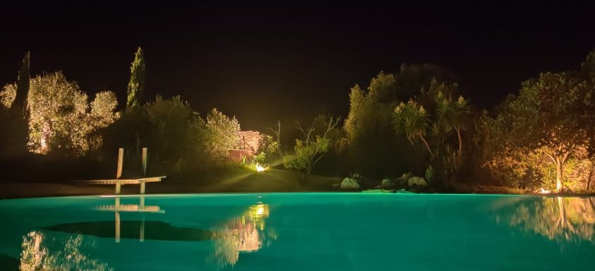 Jardin enpelousé, arboré d'essences méditerrannéenes et d'oliviers gréffés par Ange.