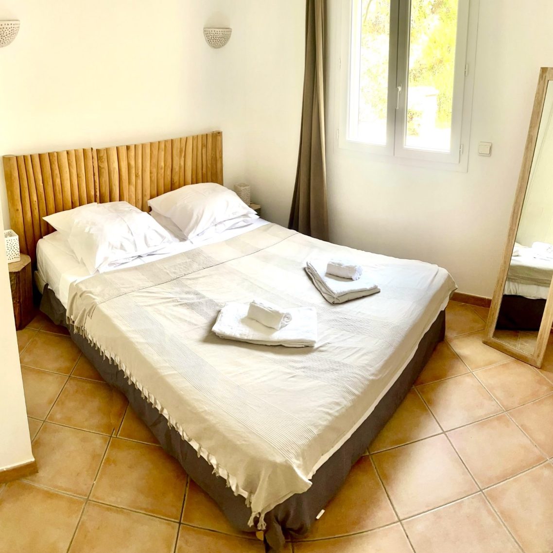 Appartements de 50 m2, avec deux chambres et un canpé-lit. Un lit double en 160 et deux lits simples et 90.